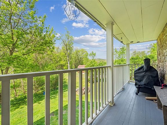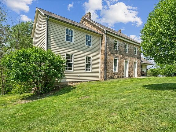Welcome to 107 Hatfield St. Step back in time with this elegantly restored 1800s stone farmhouse, rich in character and modern updates. Built from stone cut on-site, it features original wide plank floors, beamed ceilings, recessed lighting, and 9’ ceilings throughout. The home offers 3 spacious bedrooms, 2 baths, and light-filled rooms with deep windowsills showing the craftsmanship this home offers. The family room showcases a stone hearth fireplace with gas logs and the original pot hook, while the kitchen is graced with tasteful updates and classic charm. Updates include newer gas furnaces, central A/C, updated electric, blown in insulation in the attic & newer roof. The basement boasts a large stone bedrock floor and fireplace. Enjoy covered front and back porch, a governor's driveway, charming landscaping, and plenty room for a future garage. A rare bonus, this home even has an elevator! This home is truly a timeless gem blending heritage and modern comfort.