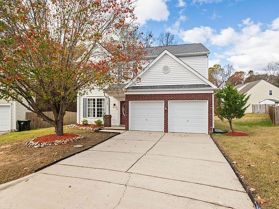 This home is located in Hollands Crossing and convenient to all the Triangle has to offer!! Walls are adorned with neutral color scheme providing versatile backdrop for any style of décor. As you enter the home, find a flex room that can easily be used for an office or hobby room. The formal dining room is large and separate from kitchen. Spacious kitchen with electric stove, microwave and eat in breakfast nook. Standout is the fabulous gas fireplace in the 2 story family room with lots of natural light adding warmth and charm to the space. Retreat to a large Owners suite featuring a cathedral ceiling, lots of natural light. The en suite bath has dual vanities, separate shower and garden tub. And plenty of closet space in your extra large closet! Upstairs are (2) other nice size bedrooms and a full bath and a separate large laundry room. This home has a large backyard, feels like a private oasis! Gorgeous arbor, pavers and tree lined gives plenty of privacy for entertaining your guest. Great flat yard for games or kicking a ball! A nice storage shed next to trees does convey. In a neighborhood w/two community pools & a playground. Excellent location, minutes to shopping, schools, Apex Park, Hwy 55/Hwy 64 and more!