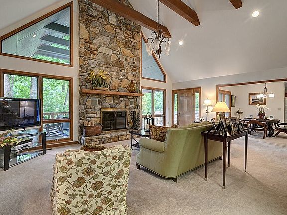 Location, location, location! Centrally located on the Highlands-Cashiers corridor. Wildcat Cliffs Country Club residents enjoy the best of both communities within a 12 minute drive in either direction. Short walk down the 18th cart path or by golf cart to the clubhouse. Long views of 17th , the 17th green, as well as the 18th Tee Box from the Living room/Dining, Kitchen, Master and huge room-sized back porch. Beautifully landscaped to ensure an element of privacy. Trees and mature shrubs maintained. Cathedral ceilings with exposed wood beams and grand stone fireplace are features of open living room. Large room-sized covered porch accessed from the living room or deck off the dining room is perfect for entertaining. Oversized loft boasts a 4th bedroom with a skylight and an office-retreat with golf course views through the vaulted living room windows. Spacious master suite features include private access to the covered porch. The master closet includes custom built-ins and a wall of windows with natural light and ventilation. Master bath w/ long double sink vanity, granite counters and dual heads/walk-in shower and heated towel rack. Separate toilet room. Main level also includes two additional bedrooms with natural light from windows on two sides, large closets and a beautifully appointed tiled baths. Open plan kitchen- dining area enjoys glass doors both east and west for natural light from sunrise to sunset. Fully Renovated open kitchen includes fully updated appliances, custom cabinetry, full stone counters and full height stone backsplash and huge island for prep or entertaining. Extended cabinetry opens to enlarged pantry and laundry with natural lighting and fresh air. The main and lower levels are recently enjoined with a beautiful interior staircase to allow better flow from the living room to lower level "rompus room". Lower level rec room for game viewing, cards and enjoying a game of pool by the fireplace. Large fully encapsulated basement space includes a large workshop, storage area and third fridge. Whole house generator. Elevator to access the lower level/garage to main living level makes bringing in groceries or luggage a breeze. Garage includes golf cart storage, small gardening workspace and a single car garage.