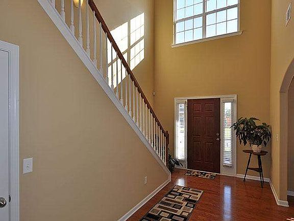 This home in Rockwell Plantation has tons of great features and lots of space! A two story foyer fills the home with light and opens to a formal dining room with hardwood flooring. Just ahead is a large kitchen with center island and over sized breakfast area. A nice den has a fireplace with gas logs and the main level master suite has two sinks with make-up area, garden tub, a separate shower, and both a linen closet and walk-in closet. Upstairs, you have three large bedrooms and a full bath. The 4th bedroom could be used as a bonus room. There are two patio areas outside, one of which has a built-in charcoal grill. You cannot beat the convenience of this location, just minutes from the YMCA and An Med Campus while just around the corner from the home you have a great community pool and clubhouse.