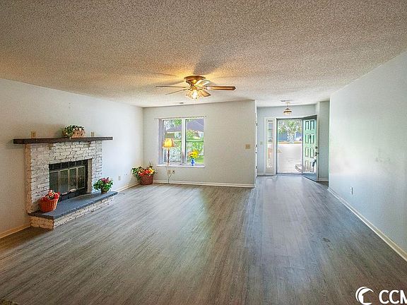 You will love this beautiful home in the active AGE 55+ community of Myrtle Trace. What a gem with so much character! This home offers an open floor plan with 2 bedrooms and 2 baths, a four seasons room that is heated and cooled, a white brick wood burning fireplace, and an eat in kitchen. The kitchen boasts granite counter tops, a glass tiled back splash, a large breakfast bar and plenty of counter and cabinet space. There is updated flooring throughout the home (NO carpet). Both bathrooms have been renovated as well and offer newer vanities, granite counter top and walk in shower! You will enjoy privacy and relaxation on the large back patio or in the sun room / four seasons room. This house is PRICED TO SELL and MOVE IN READY! Don't miss out on this one. Myrtle Trace is located close to everything including dining, shopping, healthcare and just a short ride to the beach. Schedule your showing today! Myrtle Trace is a vibrant and active 55+ community with fantastic amenities, including an outdoor pool and clubhouse. The low HOA dues and low SC taxes make this an affordable option for those seeking an active retirement lifestyle. The community offers a plethora of activities, including potluck dinners, movie nights, bocce ball, dominoes, shuffleboard, horseshoes, line dancing, poker, scrabble, canasta, bridge, mah jong, game nights, bingo, chorus, garden club, ice cream socials, and holiday parties. Centrally located, this property is just a mile away from Coastal Carolina University and only 12 miles from the beach. Enjoy a round of golf at the nearby Burning Ridge Golf Club or shop at The Outlets, both just a minute down the street. You'll also find a range of shopping and dining options nearby, including Tanager Outlets, Food Lion, Kroger, Walmart, and Lowes Home Improvement. Don't miss out on the opportunity to own this exceptional home in the desirable Carolina Forest area. LOOK UP MYRTLE TRACE ON LINE .