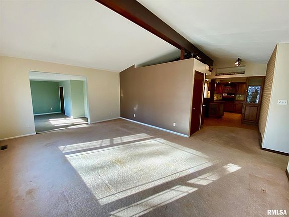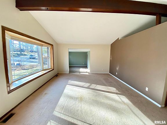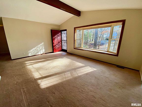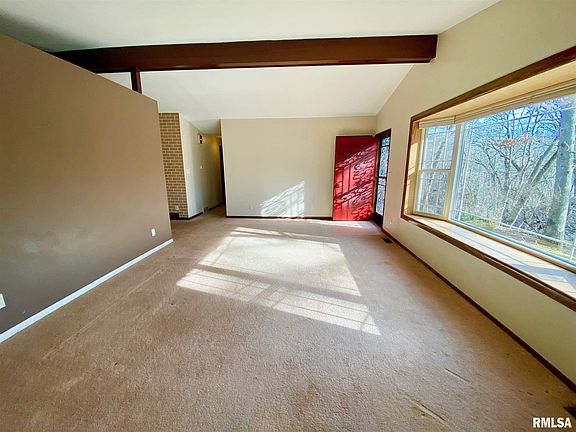 3 Bedroom 2.5 bath Mid-century walk-out Ranch in East Peoria School dist. sits on 1.4 wooded acres (2 parcels) . This home offers separate spaces for every member of the family. There is an adorable mudroom to walk into that is open to ONE of the main floor living rooms with a beautifully refinished marble fireplace and newer carpet. There is a den/office off of the living room that steps up to another main floor Family room with a gorgeous bay window with wooded views. Large eat-in kitchen features an abundance of cabinets and storage space, vaulted ceilings and a double sided island. The main floor master has newer oak wood floors and a large master bath with a step in shower and a soaking tub. 2nd bedroom also features oak wood floors, 2 closets and a half bath. 3rd bedroom with egress window in the basement has a large walk in closet and a full bathroom. There is a rec-room in the basement perfect for a playroom or a teenager hangout. Taxes reflect both parcels