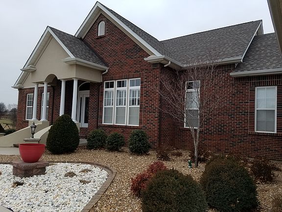Exquisite 4 Bedroom, 4 Bath ranch with walk-out basement and six cars of garage space on a 1 acre lot. Entering this home you are greeted by a barrel ceiling entry, soaring 11' ceiling and warm wood flooring carrying you by the separate dining room into the living room with a cozy gas burning fireplace. Continuing on through hearth room you will find the spacious kitchen featuring beautiful 42" cabinets, granite counters, gas cook top, double oven, pendant lights and a center island. Next you see the breakfast area and, through the windows, the composite deck and rear yard. A large master bedroom suite and bath with a double head rain shower, jetted soaking tub, bonus room, two bedrooms, full bath, half bath, laundry and mud room complete this level. Down the atrium staircase is a massive space, wet bar and 9' ceilings leading to a large covered patio. A bedroom, full bath and storage complete the lower level. A 3 car detached garage and 3 car attached garage complete this home.