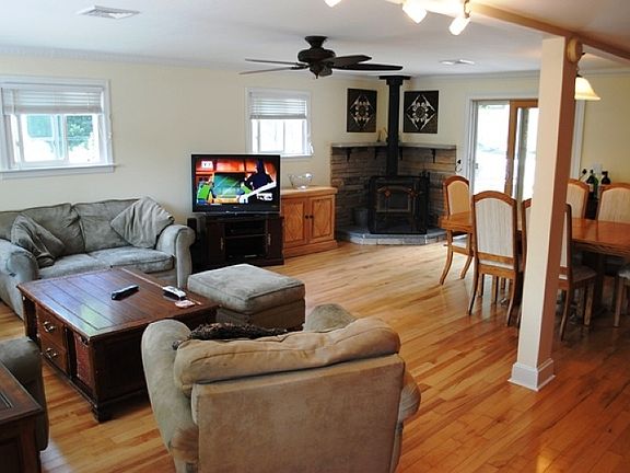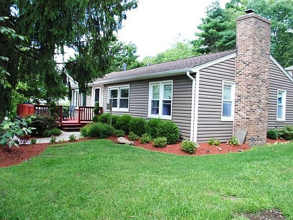 Completely renovated over the last 5 years, Open Living Room Dining Room w Woodstove, Maple floor, Newer Kitchen, w tumble marble backsplash, newer appliances, pantry,gas range/oven, under counter lighting. Master bedroom w cathedral ceiling & updated master bath, 2 additional bedrooms & office/den. New interior doors, paver patio, privacy fence, cental air conditioning. New Septic 2002, New Siding 2007, New front door&Bay Window -2007, Sliding Glass door -2003, Patio-2003, Retaining wall in rear re-built -2008, attic insulation -2010, Updated Kitchen -2006, Updated master bedroom- 2005, Maple floors- 2008, central air -2006, driveway retaining wall/stairway/walkway/railing-2010, paved driveway- 2008, surround & chimney on Woodstove -2005, basement waterproofing- 2012.