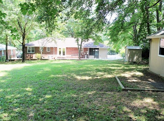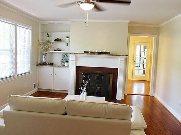 All brick home updated from floors to roof! New Architectural shingles & new heat-pump! Refinished hardwood floors run throughout the home. Kitchen features granite counter tops, stainless steel appliances freshly painted cabinets with new hardware. Dining area is large opens to kitchen. Living room offers fireplace with logs, granite mantle. Built in cabinet with decorative shelving. Large windows to allow happy sunshine to beam in! Bedrooms are spacious in size with walk in closets. Master bedroom has half bath. Hall bath features tub/shower combo. Third bedroom offers 2 closets. Large patio to entertain family and friends. Big fenced backyard with two storage buildings. Beautiful mature trees and bushes surround this lovely one level all brick home. Large laundry room with shelving. Dist 6 schools! Single garage.