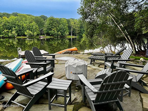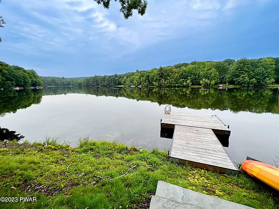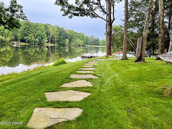 Tanglwood Lakes Lakefront w/164' frontage! This 4 bedroom, 2 bath home features awe-inspiring lake views & has been completely renovated w/cathedral tongue-and-groove ceilings, along with board & batten walls, making it the perfect lake house. The kitchen is ready for entertaining w/gorgeous quartz counters, a gas stove & SS appliances. The open concept living & dining feature a beautiful stone fireplace & sliders to the screened porch & deck. Relax & unwind in the spacious bedrooms that are all mini retreats. Head outside to the beautifully landscaped lawn or kindle a cozy fire in the fire pit and indulge in some delicious s'mores. Enjoy lake living from the stone patio & private dock. Paved driveway, 2-car garage & metal roof! You're just a short golf cart ride to Lake Wallenpaupack., Beds Description: 2+Bed1st, Beds Description: 2+BED 2nd, Baths: 1 Bath Level 1, Baths: 1 Bath Level 2