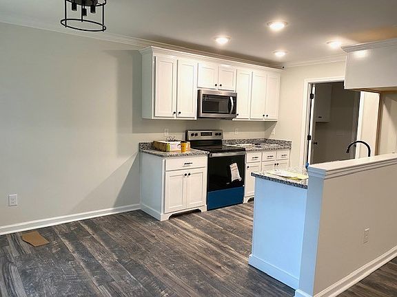 Taxes to be determined! This new vinyl sided home features approx. 1250 sq. ft., 2 car attached garage, concrete driveway, Kitchen with stove, DW, microwave, granite counter tops, vinyl planking in living areas, tile in baths, carpet in bedrooms, nice treed lot.