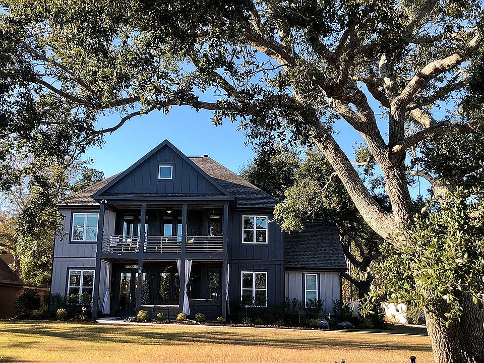 Unique modern coastal craftsman style home across the street from the Intercoastal Waterway with huge double porches.