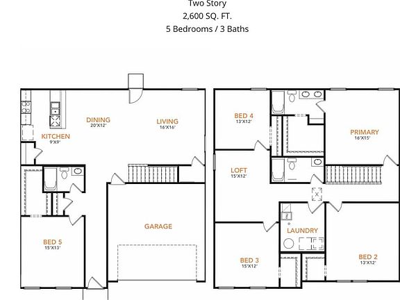 The Jackson Plan from our Liberty Series is where style meets functionality, offering a spacious design perfect for growing households. This 2-story home features 5 bedrooms, 3 bathrooms, a 2-car garage and 2600 square feet of thoughtfully crafted living space.
