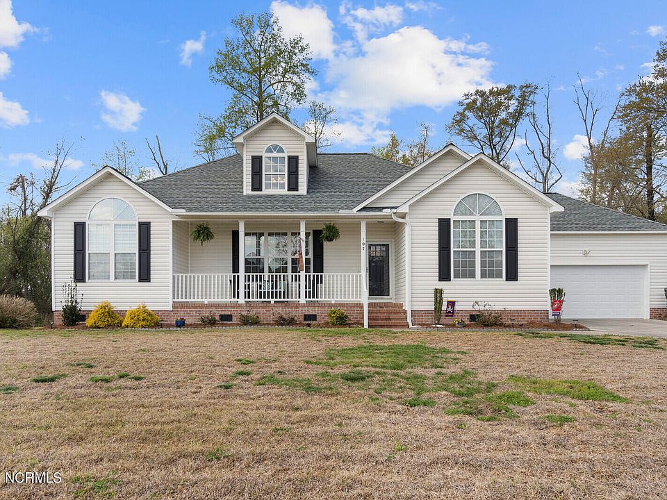 Well-maintained 3 Bedroom/2 Bath single story home with 2-car garage is move-in ready. Convenient to Washington and Greenville. Wooded back yard so you can view nature from your screened-in porch or patio. Inside, you are welcomed with wood and laminate floors, fireplace, celestory and palladian windows, vaulted ceilings and lovely architectural details. Split bedroom floorplan adds privacy between the master suite and other rooms. Recent updates: new HVAC, new paint, new landscaping, more.