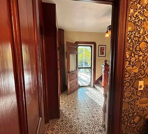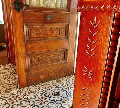 Cozy side patioOriginal interior woodworkEnclosed back porch