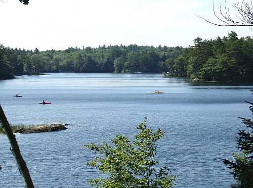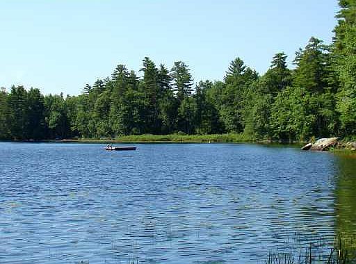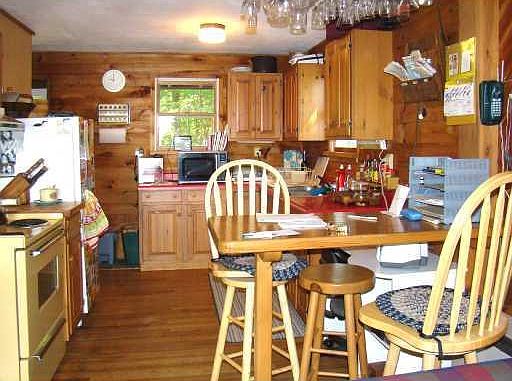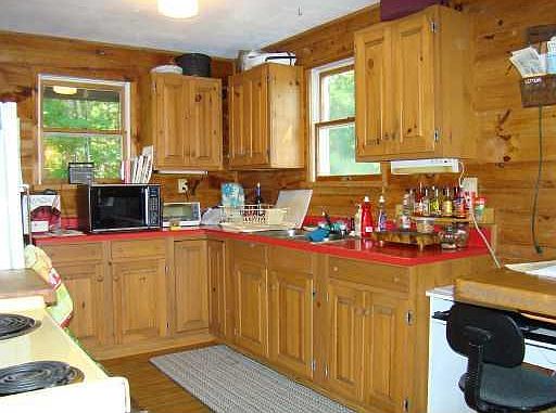 A fully furnished log cabin with a huge deck sits on a quiet cove with great privacy and a long, long view south down the length of Pemaquid Lake.