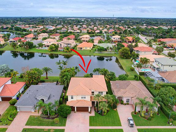 Welcome home to this gorgeous executive lakefront pool home with 5 bedrooms and 3.5 baths, PLUS HUGE LOFT 14x29 (can be 6th bdrm) in magnificent Bella Terra community! An impressive 3,967 sq ft under air, 20 ft vaulted ceilings, light & bright open floor plan & tons of space is just perfect. 3 car garage, newly resurfaced heated salt water pool w/outdoor kitchen and serene lake views makes this FLA living at it's best. The main bedroom, is conveniently located on the first floor w/ 2 huge walk-in closets. All bdrms and closets are large. The huge kitchen, features a large granite island that is perfect for all culinary adventures, 42'' cherry wood cabinets, double wall oven, gorgeous 24x24 marble floors on first floor, second floor is wood laminate. NO carpets. Freshly painted in & out Whole house generator hook up. Full set hurricane panels. Breathtaking clubhouse, pool, pickleball, 24/7 gate security, tennis courts, tot lot, basketball courts, fitness center. Great family neighborhood. Perfectly situated near shopping, restaurants, beach, airport and right off Southern Blvd for fast and easy location.