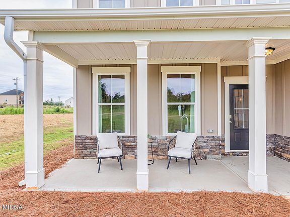 The Farmington Plan built by My Home Communities. Quick Move-In! COME GET NORTH MACON'S FINEST!!! THERE ARE ONLY 2 BEAUTIFUL BRAND-NEW HOMES LEFT!!! Beautiful quality homes with southern charm on an acre lot, and ready to move in! This beautiful two story model home sits on a ONE ACRE LOT with Farmhouse Exteriors and Side Car Garage Entry. Interiors include a Formal Dining Room with a detailed judge's panel design, 2nd Level Loft Area for entertaining or additional workspace, a Spacious Kitchen with a huge island overlooking the Family Room. The kitchen has an abundance amount of cabinet space and a pantry closet. A designated Breakfast area to rear of kitchen. Quartz countertops are throughout the kitchen and all bathrooms. Beautiful LVP flooring on the main levels' common areas. The Owners Primary Suite will have a separate tub/shower with a modern designed tile tub surround, a double vanity, and large walk-in closet. Additional features will be a mud bench for all your outdoor shoes, a massive rear covered porch, subway tile back splash in the kitchen, and garage door openers with remotes. Located in North Macon, GA with great shops and restaurants. Community is USDA Eligible. Secondary Photos are staged photos. Total Square Footage is approximate and includes main and upper level. Ask about our $3000 in closing costs with the use of the preferred lender with a binding contract by 12/30/2024.