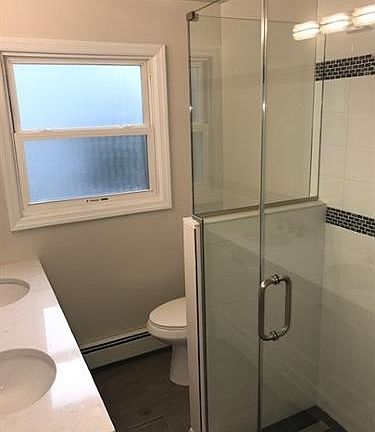LIGHT AND BRIGHT OPEN FLOOR PLAN RANCH! ALL NEW CONSTRUCTION ON EXISTING FOUNDATION. GOURMET KITCHEN W SHAKER STYLE CABINETS, RADIANT HEAT FLOORS, QUARTZ COUNTERS, SS APPLIANCES, ISLAND, OPEN TO FAMILY RM W GLASS SLIDERS TO PAVER PATIO. LIVING ROOM W SKYLIGHTAND FORMAL DINING ROOM. HARDWOOD FLOORS THROUGHOUT, FULL BATHROOM SOT, 3 BEDROOMS INCLUDING MASTER BEDROOM W FULL BATH AND TWO LARGE CLOSETS. FULL FINISHED BASEMENT WITH EGRESS WINDOW, TILED FLOORS, STORAGE ROOM W. UTILITIES AND SINK.TANDEM 2 CAR ATTACHED GARAGE. PARKLIKE YARD, PROFRSSIONAL LANDSCAPING. TAXES 2017 $10, 019 CLOSE TO NYC TRANSPORTATION. MAKE THIS HOUSE YOUR HOME!