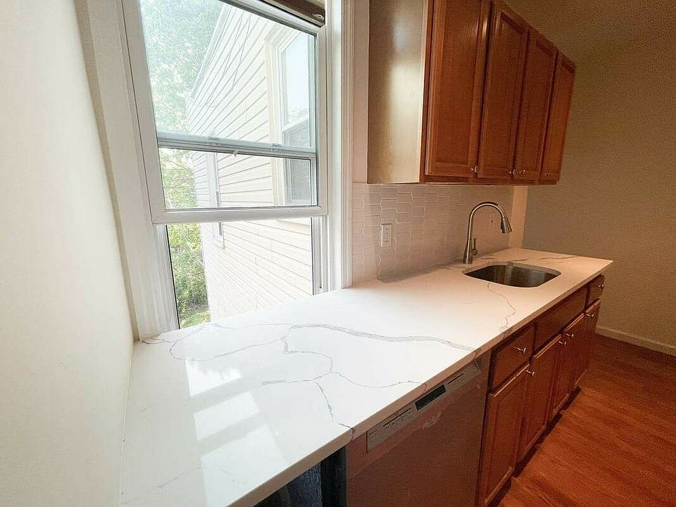 5 spacious sunny rooms! 2 private bedrooms on opposite sides of the apartment plus office room, All new gut Reno. High end finishes, Bosch dishwasher, quarts countertops, large open kitchen / dinning room and livingroom, windows everywhere 6 large windows. Pool table rec room, storage in the basement, shared front yard. Great location