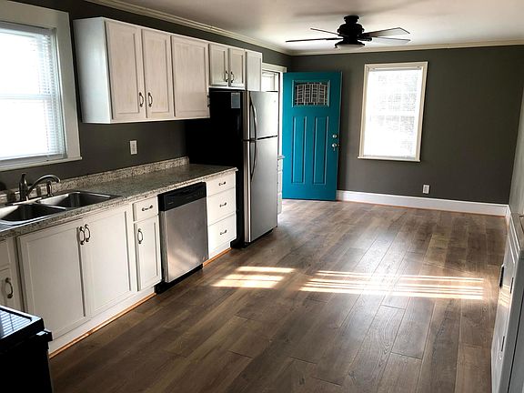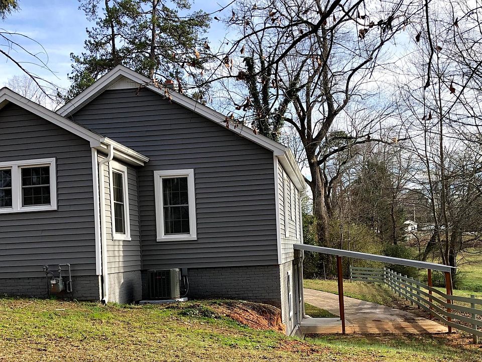 This house is newly renovated, with new roof, vinyl windows, siding, paint, electric hot water heater, appliances, new electric central air conditioning and natural gas heat ,covered attached deck, 2 car carport, refinished oak floors, updated plumbing and fixtures, electrical, all LED lighting. This house has 2 bedrooms, 1 bath, living room, kitchen, office, and finished basement. Located inside Easley city limits, and within 5 minutes of downtown and major shopping. Landlord furnished stove, refrigerator, microwave, washer, dryer, ventless gas logs, and maintains yard. Tenant responsible for utilities, natural gas, phone and internet. No pets or smoking allowed. First months rent and security deposit required prior to moving in. Application must be approved, and rental agreement signed, containing complete terms.