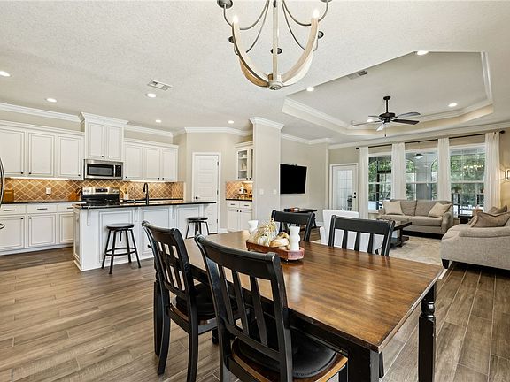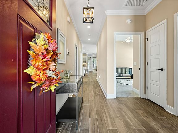 Welcome home to Laurel Landing, nestled in the beautiful Laurel Links Public Golf Community. This charming single-family attached stucco villa offers the perfect blend of comfort, convenience, and privacy. The fenced backyard backs up to a serene tree line, creating a peaceful retreat to enjoy from your screened-in porch. Lawn care and irrigation water are included in the HOA, so all you need to maintain is your flower bed giving you more time to relax and enjoy your home. Inside, you’ll find wood-look tile flooring throughout the living, dining, kitchen, and bath areas, creating a warm and inviting atmosphere. Elegant crown moldings and trey ceilings enhance the living and kitchen areas, adding a touch of architectural detail and sophistication. The open-concept layout is ideal for both everyday living and entertaining. The kitchen features granite countertops, a spacious island, a walk-in pantry, and stainless-steel appliances. The split-bedroom floor plan offers a large owner’s suite overlooking the backyard. The owner’s retreat also features crown molding and a trey ceiling, elevating the sense of luxury. The spa-like en-suite includes double vanities, a soaking tub, a huge open tiled shower, a private water closet, and an oversized walk-in closet with custom built-ins. Two additional guest rooms with vaulted ceilings provide comfortable and stylish spaces for family or guests. The laundry room has been cleverly designed to include room for a desk, adding versatility to the home. Exclusive Laurel Landing amenities include a sparkling pool with a separate shallow area, a community fitness room with weight equipment, and two playgrounds, one at the pool and another closer to the villa at the end of Laurel Landing Blvd. Located just minutes from Naval Submarine Base Kings Bay, I-95, shopping, dining, schools, Historic St. Marys Waterfront Park, and Crooked River State Park, this home offers easy access to everything you need. Commuting to Jacksonville, Brunswick, or the beautiful Georgia and Florida beaches is a breeze. Experience easy living and a vibrant lifestyle—schedule your private tour today!