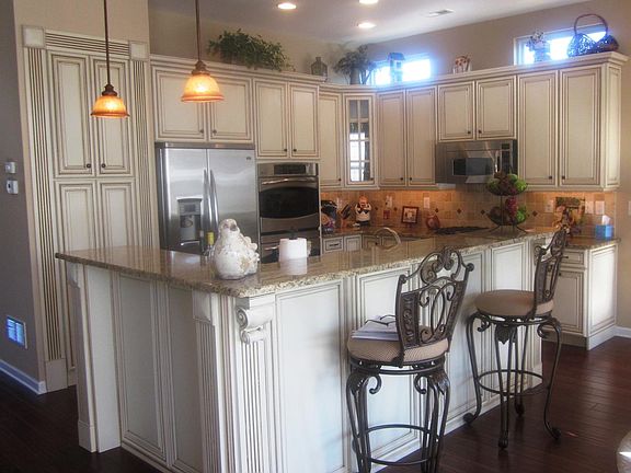 The Bayhill you have been waiting for! Boasting a brickfront, brick paver walkway and etched glass entry door, this home has an expanded: Kitchen-Great Room-Master BR & Garage! Knock-out Antique White Kitchen w/ Mocha Glaze - a LEVEL 5 upgrade! The custom pantry and Center Island match the cabinetry! You'll love the Granite Countertops, SS appliances and double oven! The open floorplan features distressed hardwood wide plank floors, gas fireplace with stone mantle, large brick paver patio surrounded by professional landscaping, BOSE sound system, showcase extended garage and award winning clubhouse with every amenity! There is also 24-hour security and a 9-hole Executive Golf Course. Retire in Style and come see this SUPER VALUE!!