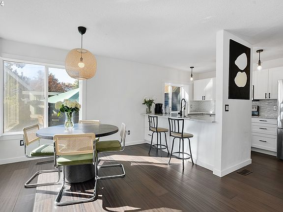 This beautifully remodeled 3 bed + 2 bath Traditional offers modern living with timeless charm. The open-concept design features vaulted ceilings and a wall of windows, filling the home with natural light. Newly painted inside and out, the home boasts a brand-new kitchen with slab quartz countertops, custom cabinets, and stainless-steel appliances. Relax on the freshly poured patio in the fully fenced yard. The primary suite on the main floor includes a spa-like bath with dual sinks, a quartz shower, and a spacious walk-in closet. Upstairs, a second suite awaits with its own bath featuring a soaking tub and ample closet space. Gorgeous engineered hardwood floors flow throughout. Enjoy access to the Mountain Park Recreation Center, with pools, a gym, and fitness classes. A private path leads to Oak Creek Elementary, with Lake Oswego Junior and High Schools nearby.