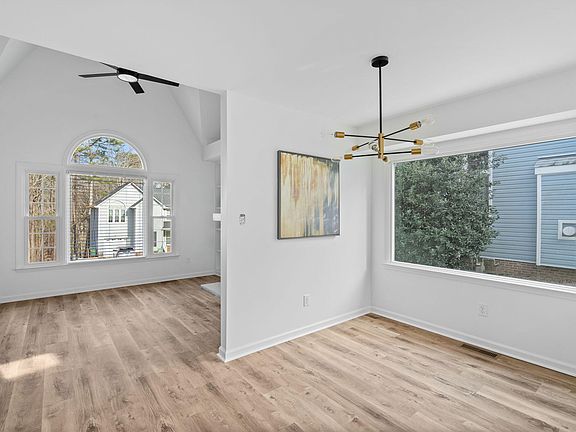 Charming and Bright, Move in Ready, open floor plan. 3 bedroom, primary & additional bedroom on main floor. Additional bedroom and bath and loft on second floor. Landscaped back yard with fire pit and garden area. Walking distance to Kildaire Farm Lake.