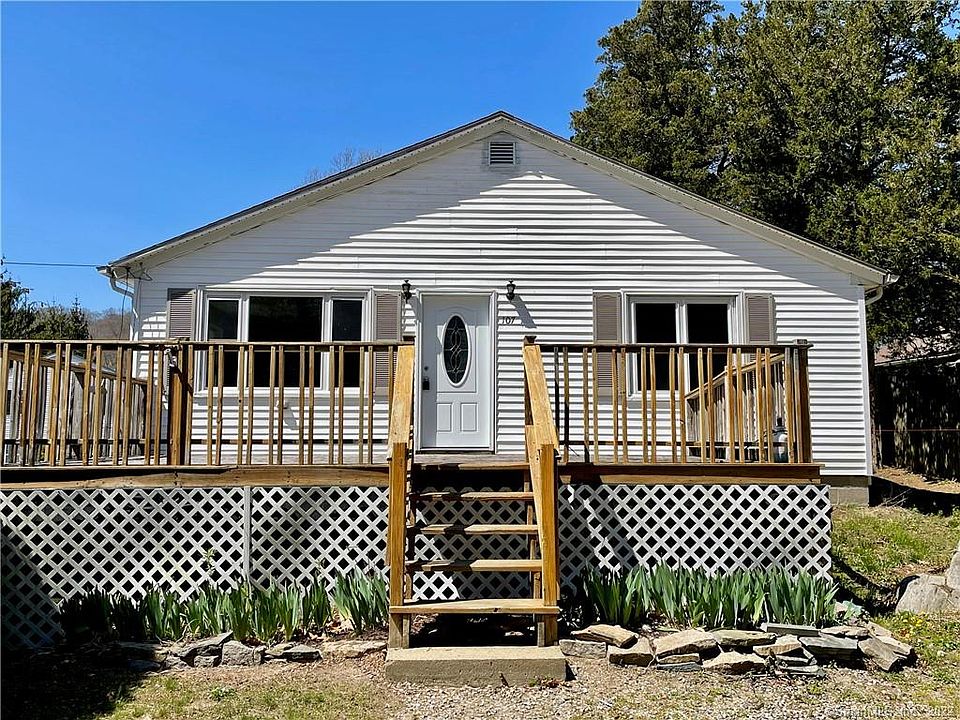 This property has a gorgeous water view from the back patio/deck. Newer windows, New Paint throughout, New Carpet. All new plumbing and electrical in 2012. It is plumbed in the Master's closet for a possible full bath. Hot water heater replaced 2 yrs ago. Roof only 8 yrs old. The front deck WILL be refinished with a new top rail as well when weather cooperates. This home is perfect if you need space for the in-laws Separate living space with full kitchen and a 4th bedroom and full bath AND its own entrance is the lower level. There is a 10' pedestrian easement for foot traffic to get to the water and a driveway easement from 107A Kitemaug Road.