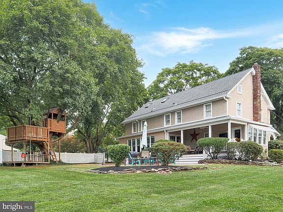 Don't miss this opportunity to own one of Harleysville's original farmhouses, surrounded by mature trees, attractive landscaping, and located directly next to a fishing pond! Current owners of 20 years are empty-nesters who raised their kids in the renowned Souderton Area school district, and are ready to pass this magnificent property on to new caretakers. Built circa 1835, this was originally two homes (side by side) but is now combined into one big home, on a single deed. Situated prominently on a 0.76-acre corner lot, tranquility awaits as you watch the sunset over the pond each evening, from the comfort of your covered back porch. The home exudes historic character and charm that you will never find in a cookie-cutter house. Deep windowsills, random-width plank flooring, and hand-pegged doors have all been lovingly preserved. But it certainly does not lack in modern conveniences! The long list of upgrades includes a central air system, brand new roof and gutters, numerous built-ins, crown molding, modernly appointed kitchen and baths, a waterproofed basement with lifetime guarantee, extensive insulation, updated wiring and plumbing, and the option to easily upgrade to natural gas and/or a heat pump if desired. Separate from the house itself is a huge 2-level detached garage, with 3 bays on the upper level and 600 sqft of additional storage on the lower level, accessible from the rear. For the kiddos, there is a triple-level cedar treehouse that you must see to believe, complete with tree swing and rope basket! This treehouse is so amazing that it was featured in Family Handyman magazine. Majestic 100-year old Norway Maples surround the home to help keep it cool in the summer and warm in the winter. Just across the street you can enjoy Lower Salford's extensive walking trails, which lead to local parks, ponds, and some of the area's most popular restaurants. Low taxes, no HOA, and plenty of space between you and the neighbors. Come see how very special this home is -- make your appointment today before it's gone!