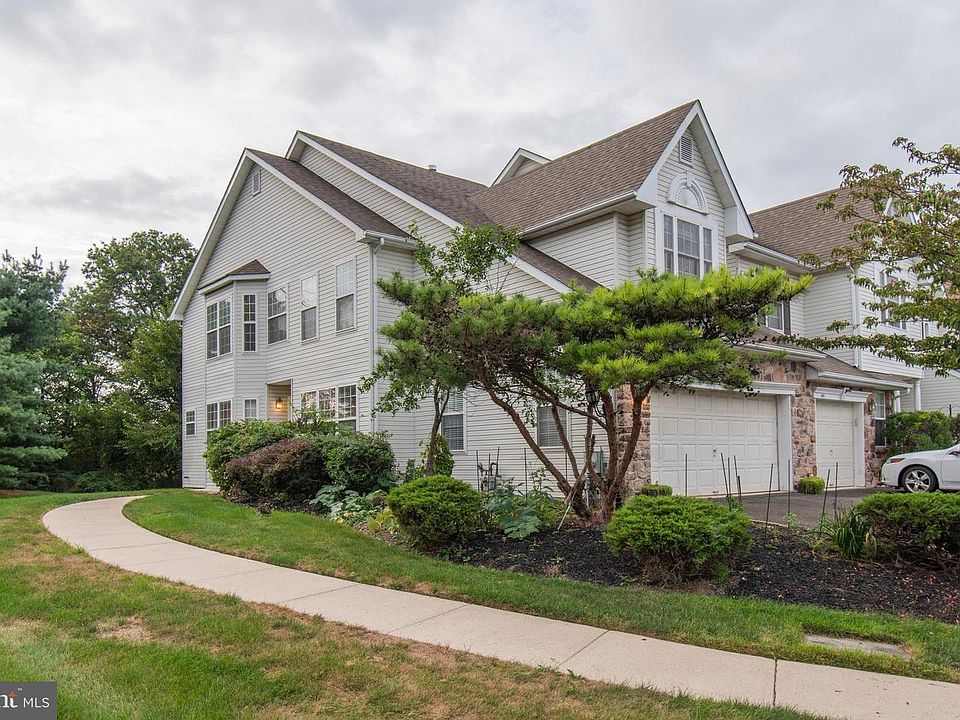 A very well maintained and updated end unit townhome with 2 car garages in Warrington Hunt is sitting on a large lot with lots of privacy and located in an award-winning Central Bucks School District. Two story foyer welcomes you into this former model home with lots of great features. There are classic hardwood floors, crown moldings, chair rails, ornate columns throughout the first floor. Many recessed lights, large windows, and open floor plan affords a bright and airy atmosphere night and day. The formal living room in front has a large triple window and the dining room boats a beautiful chandelier and a bay window. The family room highlights a marble surround gas fireplace with a classic mantle to create a cozy atmosphere for those chilly nights. The kitchen has lots of upgraded cabinets for plenty of storage, solid surface countertops with integral sinks for easy clean ups and modern appliances enable many gourmet meals. The adjacent breakfast area has a glass sliding door leading out to a deck to enjoy the backyard. More hardwood floors and crown moldings continue in the second-floor hallway. Master bedroom features a cathedral ceiling, recessed lights, bay windows, two walk-in closets and a great view of the private yard. Master bathroom has a soaking tub, stall shower, double sink vanity and a linen closet for convenience. Two other bedrooms on the second floor are both spacious. A French door leads you downstairs to a large finished basement with laminate floors and bright lighting that can be used as a recreation area or exercise room as you please. 2 Zoned heating and Air Conditioning. There are custom window treatments, beautiful wallpapers in key areas and lots of details in this feature rich home you can call yours soon!