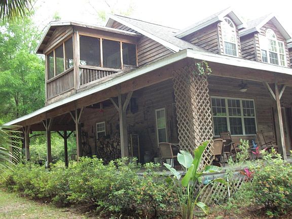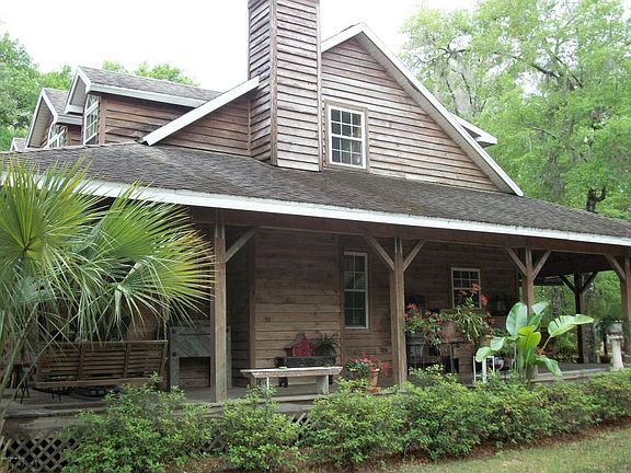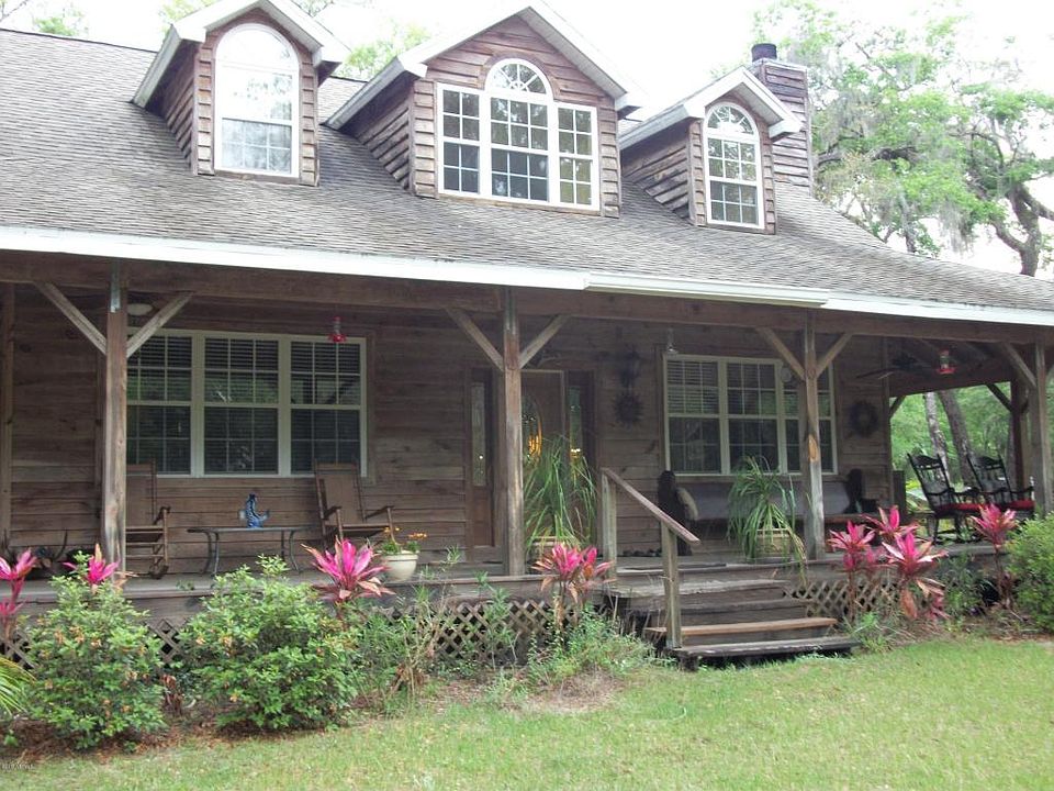 2006 Custom built 2 BD/2BA home with wrap around porch in a peaceful community setting with 7+ acres with views of Lake Broward. This home, garage and outbuildings were all built with Southern Yellow pine taken from the property. Vaulted ceilings, open floor plan, skylights, lots of closets and many extras. Master suites on both floors. Sleeping loft and guest cottage for extra guests. Open kitchen with breakfast bar, dishwasher, stainless steel refrigerator and stove. Must see this one!