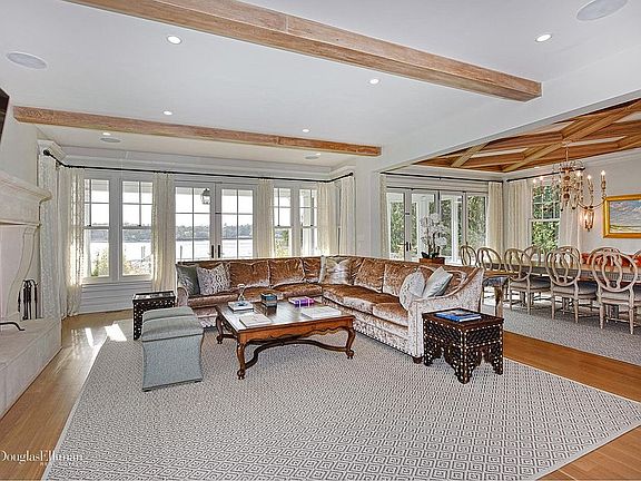 Step inside this sun drenched Hamptons style showplace which offers stunning architectural details & finishes that sets a new standard for luxury No detail has been missed in this newly completely rebuilt & expanded 6 bedroom, 6.5 bath residence with its own private sandy beach on 1.32 acres of prime Manhasset Bay waterfront. Imagine breathtaking sunsets with panoramic vistas from any of the gorgeous principal entertaining spaces. Be mesmerized by the property which is truly a tranquil retreat offering a 22 x 42 heated inground salt water pool & spa, a summer kitchen, multiple terraces including one w a cozy outdoor fireplace This custom state of the art smart home offers 11 zones of radiant heat, 5 fireplaces,newly built 250 ft dock & stone sea wall, 10 ft plus ceilings, sonos sound sytem water filtration system, Central Air Conditioning, Security System w cameras,bespoke cabinetry,a true gourmet kitchen with a La Cornue Range & much more.Over 7800 sq ft of luxury on 3 open levels .