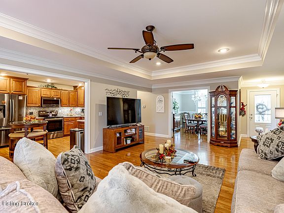 Welcome to easy living! This gorgeous, well-maintained ranch sits on a double lot and offers convenient access to local amenities with its premier location. Open the front door to the foyer that leads into the large living room with a trey ceiling and crown molding. Off the living room is the kitchen with granite countertops and backsplash, all the appliances and lots of cabinet space with undercounter lighting. If entertaining, you will find the dining room in the front of the house with a tray ceiling, crown molding, and beautiful glass chandelier with a view of the well manicured landscape and lawn. One side of the home you will find the primary bedroom with a large walkin closet and ensuite complete with tile flooring, jacuzzi tub and separate shower. Travel to the other side of the home to find the other two bedrooms, one of which has a walkin closet, and full bath with tile flooring. Open the garden door at the back of the living room and walk out onto a large deck that has been lovingly maintained and provides the perfect spot to sip your morning coffee. Did we mention gorgeous hardwood flooring throughout? Don't hesitate to come see this Bardstown beauty for yourself!
