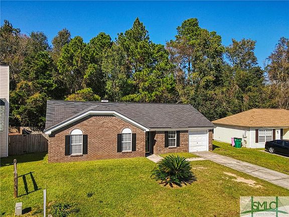 Welcome home to this all brick Ranch charmer in Laurelwood Plantation! Offering 3 bedrooms, 2 full bathrooms, a formal dining room and separate breakfast nook plus a single garage. The Great Room showcases a beautiful brick, wood burning fireplace and has updated flooring, vaulted ceilings with a ceiling fan. The French doors lead you to your private backyard with wooded view. Newer roof, air conditioning units, and laminate wood-look flooring in main living areas, freshly painted exterior, and also a whole house water softener. Perfectly located off of Quacco Road so it is convenient to Pooler shopping and dining, HAAF, downtown, Georgia Ports. No HOA!!