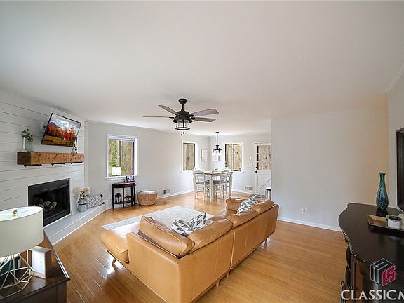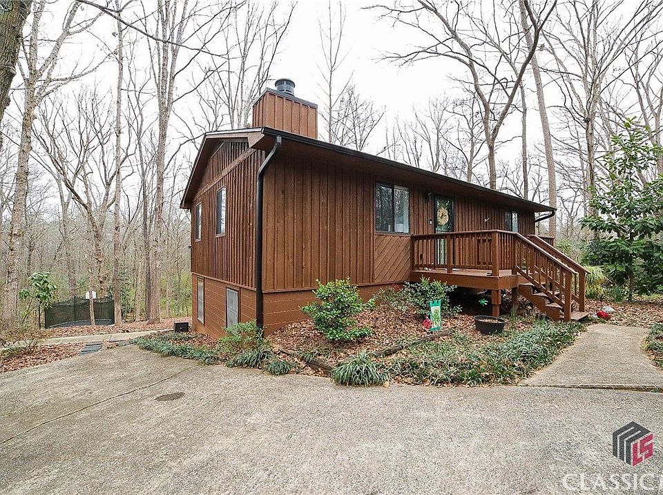 Escape to your own piece of paradise with this charming cedar cottage nestled in a serene woodsy setting that evokes the essence of a mountain retreat. Picture-perfect tranquility awaits with Spring buds in bloom and the babbling creek bordering the rear of the property, offering a soothing soundtrack to everyday life. Greeted by the front porch, you’re effortlessly welcomed inside. Get ready to take a pause as you discover a newly renovated interior that’s not only striking but will exceed your expectations. Every detail has been carefully curated, from the designer paint choices to the upgraded light fixtures, bamboo floors and the stunning shiplap-adorned fireplace with added gas logs. The open floor plan seamlessly flows from the cozy living room to the formal dining area, perfect for entertaining. The sparkling kitchen also offers updates, featuring painted cottage-style cabinets accompanied by updated hardware, "faux granite" counters, and top-of-the-line stainless appliances, including a gas stove for precision cooking. Retreat to the main floor bedrooms, where ample space, large closets, and ceiling fan light fixtures await. Both provide quick access to the remodeled hall bath that bursts from the seams with modern appeal. This unassuming concept expands to the lower level where endless possibilities await. Refinished to provided a more functional space, thoughtful renovations took place to offer several storage closets, pantry with shelving, bookcase and more. The daylight terrace level’s multi-use layout is comprised of a rec. room, laundry room, spacious full bath with handicap accessible shower, secondary flex space and oversized bedroom. This design even allows for an option to create a private suite with exterior entrance. Additionally this fabulous bungalow encourages outdoor living with the private rear deck, featuring bench sitting, overlooking the woodsy landscape. This total package is found in the sought-after Downtown Watkinsville area, providing unparalleled convenience to Butler’s Crossing, Hwy. 441 and local events. Pristine condition, upgraded appeal, peaceful setting, Oconee Schools…welcome to Layle Lane. The community offers FREE Trash and Leaf and Limb pickup.