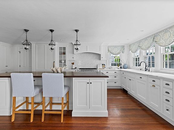Nestled in Hingham Centre, 107 Leavitt Street is a picture-perfect expanded Cape that feels like it’s been pulled from the pages of a classic New England storybook. With its white picket charm and timeless craftsmanship, this 3++ BD/2.5 BR home is rich in character — where high-end renovation meets the warmth of tradition. The beautiful chef's kitchen features an oversized walnut island, banquette seating, custom cabinetry, and top-tier appliances. The open floor plan flows directly into what South Shore living is about. Spend summer afternoons under the pergola, gathered around the saltwater gunite pool in the flat, fenced-in yard surrounded by mature plantings and perennials. Inside, a spacious first floor primary with a spa-like en-suite bathroom makes for easy living. Two additional bedrooms and a large bathroom upstairs complete the offering. Just 20 minutes from town, this is the kind of home where life slows down, memories are made, and every season is savored.
