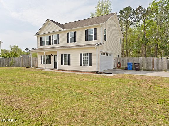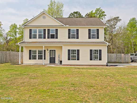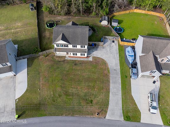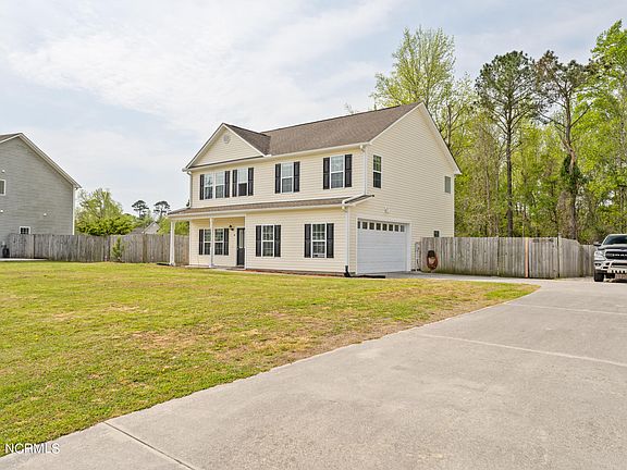 One mile from the boat dock and in a well established neighborhood this 4 Bedroom home in the Waters Edge Section VI community of Hubert is just waiting for its new owners! As you pull up to the home you will love features like a side entry garage, covered front porch and fenced backyard with mature trees. You'll appreciate the openness of this floor plan that starts with a formal dining room that flows into the large kitchen and family room with fireplace for those chilly North Carolina Evenings. The kitchen includes a bar area with plenty of counter and cabinet space, all stainless steel appliances with a double oven and large pantry. And did I mention the huge sunroom off of the kitchen and family room? Entertaining will be wonderful with the back patio and fire pit. The second floor has a laundry room and includes 3 guest bedrooms with walk-in closets, a guest bath and primary suite with a tray ceiling, two closets, dual vanity, oversized soaking tub and walk-in shower. Home is convenient to Camp Lejeune back gate on 172, shopping, schools, and water access.. Call today to secure your personal tour!