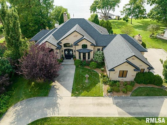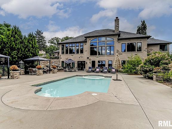 This 6000sqft walkout ranch was built in 2007 on Lake Springfield in the Rochester School District. Living room with soaring 14-foot ceilings and a lake view. Primary suite features lake views, walk-in closet, tile shower, and claw foot tub. Kitchen features granite counters and backsplash, two island spaces with a breakfast bar, large pantry, Wolf gas range with a custom hood, built in refrigerator/freezer, wine bar, and large eat-in dining area with an office nook. Outdoor kitchen with a fireplace and bar seating/grill area. Heated four car garage enters to the laundry/mud room with cabinetry, island, sink, and half bath. The family room has a stone fireplace hearth and a bar/kitchenette entertaining area. Three lower bedrooms, bonus room, exercise room/playroom, two full baths, storage, and second laundry. Fenced area with an inground pool/spa. New seawall, firepit, lakeside patios, powder coated steel two-boat boathouse with lifts, storage building, and fully irrigated yard.