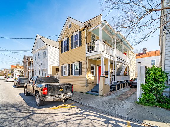 Circa 1890 duplex consisting of a total of 5 bedrooms located in historic Elliottborough neighborhood on the Charleston peninsula. This traditional Charleston-single styled building has been updated with a strong focus on preserving original elements. Throughout both apartments are original pine floors, original fireplaces (non-functioning) and significant amount of original beaded board wall and ceilings.The first floor apartment has three bedrooms, one bath, an open living and kitchen layout, maximizing usage of space. The second floor apartment has two bedrooms, one bath, an open living/dining combined room and a separate kitchen. Each apartment has completely separately metered water and electricity. All appliances will convey including washer/dryer units in both apartments. Off-street stacked parking for up to three cars and small patio area at back of home. Residential parking permits are also available for street parking through the City of Charleston. Each unit qualifies for two parking spaces. Designated as an "X" flood zone results in flood insurance being optional. Current owner has experienced no flood events. Both apartments are currently rented through July 31, 2024 and have been steadily occupied. With proximity to MUSC, King Street, CofC and other restaurants, shops, and bars, this duplex is centrally located for maximized urban living.