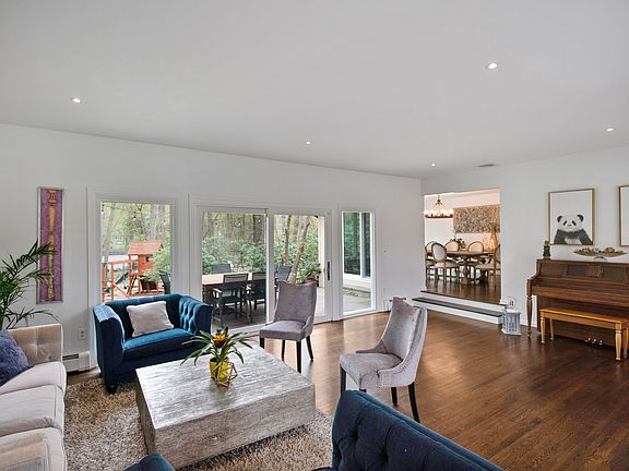 Located on one of the most sought after cul-de-sacs in North Stamford, close to shops and Merritt, you will find this chic, fully updated contemporary ranch. Crisp, whitewashed oversized rooms, floor to ceiling windows and doors and an open floor plan centered around a courtyard patio all combine to create a seamless indoor/outdoor environment. Updated large eat-in kitchen, family room with vaulted ceiling and fireplace and lower level walkout bonus room with additional fireplace provide amazing versatility for a myriad of buyers. All four bedrooms including the expansive master suite with His & Her bathrooms and walk-in closets are located on the main floor for easy one-floor living. Freshly painted inside and out, this home is truly move-in ready!