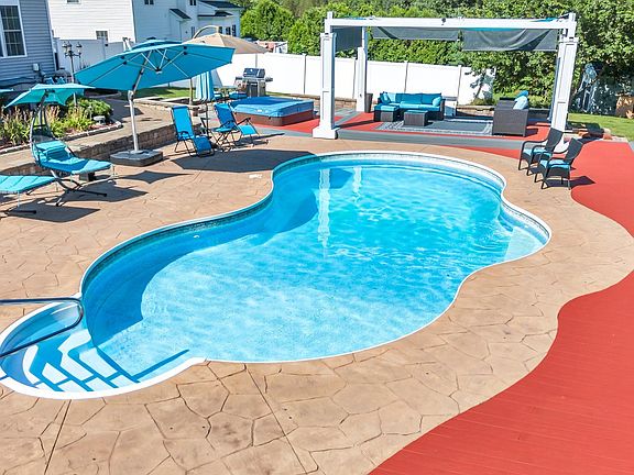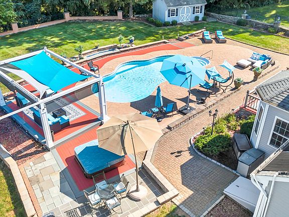 Welcome to your very own private oasis situated in the highly sought after Cider Mill Subdivision. Backyard is a showstopper that features a private inground pool embellished by beautiful stonework, a firepit, luscious landscaping, jacuzzi & a cabana w/ retractable shades. If that's not enough, sit back for some alfresco dining w/ a full outdoor setup suited for both grand scale entertaining or pure relaxation- you decide! Inside, this impressive Colonial offers an unparallel blend of style, comfort & functionality. Spacious & inviting living rm w/ vaulted ceilings, fp & tons of natural light. Well-appointed kitchen w/oversized island, granite counters & the perfect eat-in area overlooking your gorgeous grounds. A traditional dining rm & private office complete the first floor. Upstairs you will find an expansive primary suite w/ a walk-in closet & on-trend bathroom featuring an illuminated mirror & a spa-like dual shower that is designed to bring in daily Zen. Convenient laundry is situated directly off primary bath. Two additional bedrooms both generous in size & another updated full bath round off the second floor. Of course, the lower level does not disappoint w/ endless possibilities & full potential to adapt to your specific needs. Ideal location close to town, yet in a serene setting. Other features include irrigation system, landscape lighting & pool shed for storage... Perfect layout, location and truly an outdoor haven designed for an elevated lifestyle.