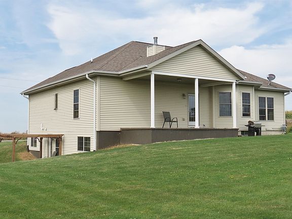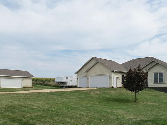Wonderful location on edge of quiet small town of Delmar offers a large ranch home on 1.72 acres, 5 bedroom, 3.5 bath, large primary BR suite with walk in closet and bath, spacious kitchen, open to living room, gas fireplace, main floor laundry/half bath, finished walkout basement offers family room, storage, office area. 3 car attached garage, plus 32x24 shed, covered porches, appliances stay, one year home warranty. Take a look today!