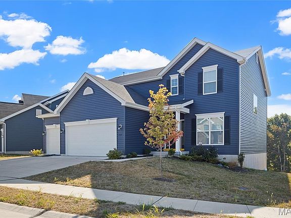 Here is your chance to own a 1 year young 4 bed, 4 bath new build in the desirable Majestic Pointe subdivision and sought after Rockwood School District. As you enter the naturally sunlit foyer you will be greeted by beautiful floors, an open floor plan, a bay window wall that looks out to a private backyard and a luxury kitchen with high end quartzite counters that continue up into the backsplash, custom 42" cabinetry with glass and storage, a spacious island for extra seating, a commercial grade hood and SS appliances including a double oven and gas stove. The main floor also includes an office space with french doors, a separate dining area, a cozy large great room prewired for sound and security, and a convenient eat in kitchen. The second floor boasts 4 bedrooms including the master bedroom suite that boasts a coffered ceiling, a his and hers walk-in closet and a luxurious master bath with double vanity sinks, a soaking tub and separate shower. The basement has a 9ft pour and a walk out basement and plenty of light with 4 windows. It has a rough-in and is ready to add future bedrooms and bathrooms in the future. It also has a 50 gallon water heater and a dual HVAC system for efficiency. The other 3 bedrooms are spacious and 2 have their own walk in closets. Enjoy extra storage in the 3 car garage with a built in Tesla charger. $1000/year for new development fee will apply for next 29 years.