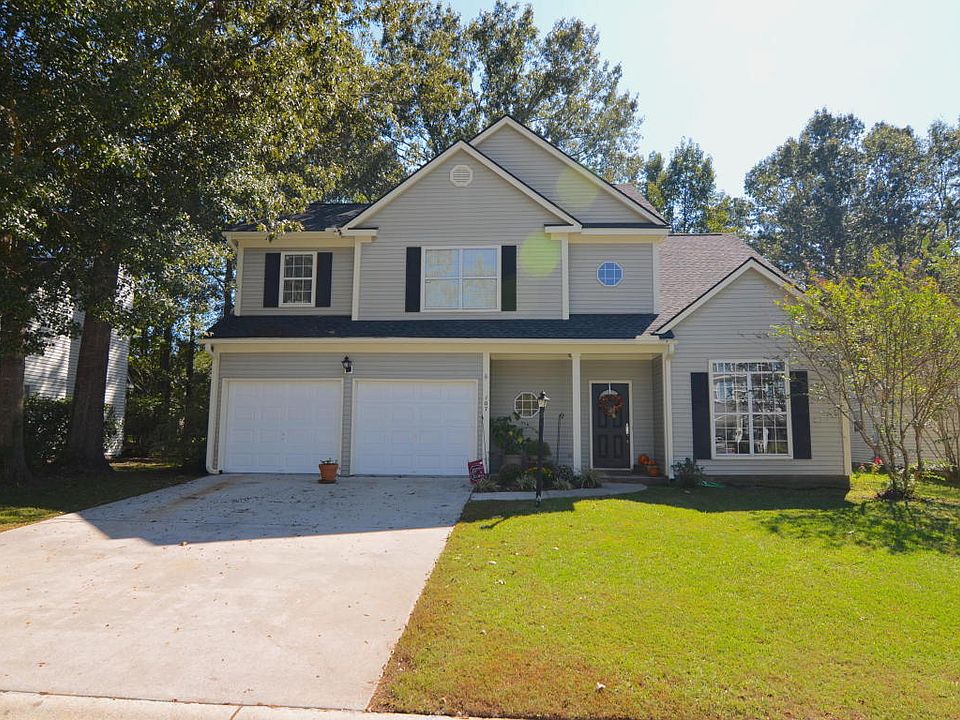 Beautifully updated home in highly sought after Crowfield Plantation. A bright open floor plan with vaulted ceilings and new paint throughout greets you as you enter. Laminate wood flooring downstairs leads to an open kitchen with plenty of cabinet storage. The eat-in kitchen transitions to a large family room with wood burning fireplace. New carpet leads you'll upstairs where you'll find four sizable bedrooms plus a loft. The Master Suite features a walk-in closet completely updated bathroom with dual vanities and glass/tile shower. The home sits on a lot wooded lot with a screened-in porch and mature trees for privacy. The neighborhood surroundings feature community pools parks tennis courts and 26 miles of lush walking trails.
