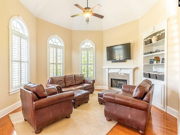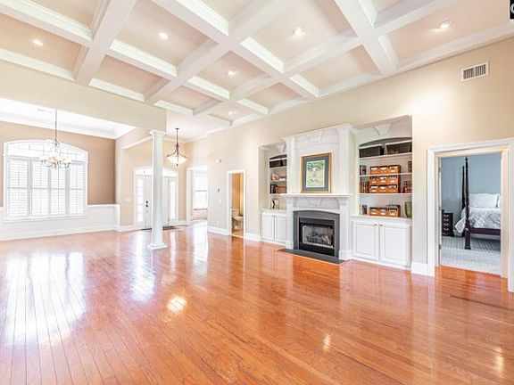 This beautiful 4 bedroom 3 bath brick home is freshly painted, has new carpet and is move in ready! Master and 2 bedrooms are on the main level and1 bedroom on upper level with a full bath. Walk in to an open living room with a gas fireplace, hardwood floors and coffer ceilings. Spacious eat in kitchen with an island, granite countertops, a double oven and a cozy den with a gas fireplace where you can sit and relax with your favorite beverage after a long day. Head out back to lounge on the screened in porch or grill on the deck that leads to the large, open yard. There is a well for irrigation. Another great feature of this home is the oversized, 2 car garage!