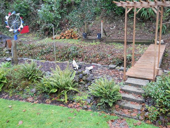 Immaculate home tucked into a serene creekside setting on a quiet dead-end road. Listen to the small creek babble from the deck or your own bridge in the nicely landscaped backyard. Many versatile rooms and a large master suite. Laundry room with a sink, storage shed with electricity. Large paved parking area. Come live in this peaceful spot in a quiet fishing village.