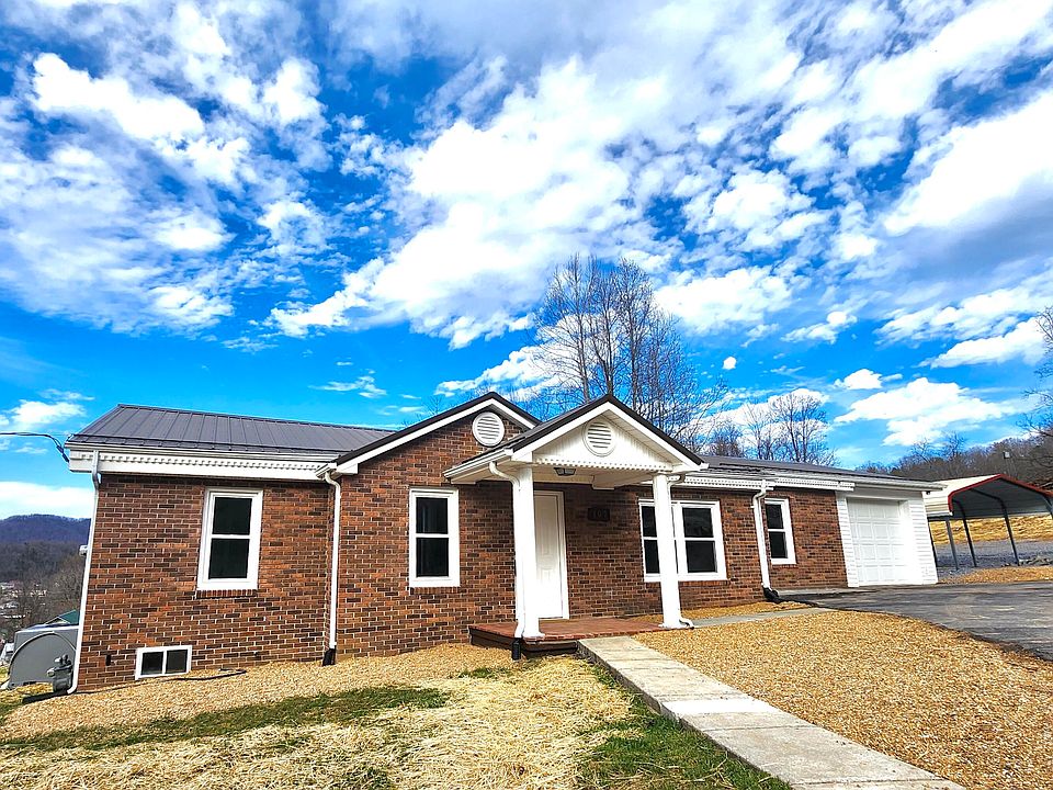 Move in ready! No city taxes! Totally new and remodeled 3 bedroom, 2 bath brick home all on one level on a .5391 acre lot with beautiful mountain views. Convenient Erwin location. This home has been completely restored and renewed from top to bottom! New electrical, plumbing, kitchen cabinets and appliances, bathrooms, sewer, HVAC, sheetrock, insulation, roof, windows, deck...everything is NEW. This home has many extras you won't find anywhere else. Huge covered deck (550 sq.ft.),large storage building with tall ceiling electricity(575 sq..ft.), finished garage(375 sq.ft.), and two car carport. Home is located on a private dead end. This listing is a being divided from a larger parcel. Two adjacent lots totaling .8847 acre also available for purchase. Real estate tax amount may change. Buyer, buyer's agent to verify all listing information. Some information from third party sources.