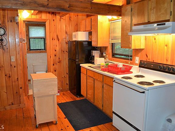 TRACKROCK RUSTIC CABIN on 1.5 wooded acres. Seasonal Mtn views. Unrestricted. All wood interior with 1BR plus LARGE loft, 1 full bath. Furnished. Wood Stove and central electric H/A. Shared well with water agreement in deed. Large covered porch. Firepit area too. Paved rd frontage and gated private drive for 3 homes. Excellent location for Hikers, Horse back riders, Nature enthusiasts. Close to Alexanders store. Trackrock Archaeological area around the corner as well as the Arkaquah Trail that leads to the highest Point in GA... Brasstown Bald.