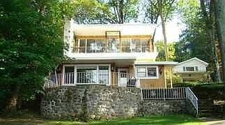 LAKEFRONT! VACATION ALL YEAR L Contemporary lakefront home with 3 levels. Kitchen & dining areas overlook Lake Hopatcong. The living room features a wood burning fireplace; second level offers 3 bedrooms, the 3rd level features a great room with fireplace, kitchenette and spectacular views of Lake Hopatcong. Located close to major highways and NYC train.