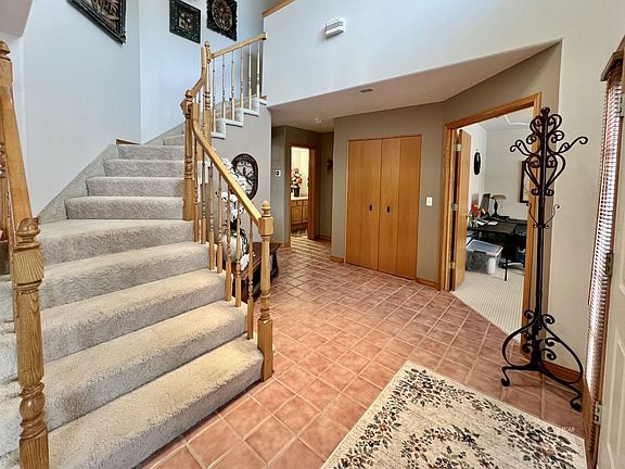 Welcome to 107 Meadow Ridge Ct. When you enter this stunning home you are greeted by a sunlight filled tile entry way, vaulted ceilings, and a formal living room. The kitchen is equipped with hardwood floors, Quartz countertops, stainless-steel appliances, including an induction oven with provisions for a future gas stove, pantry and a convenient island. There is a breakfast nook just off the kitchen and a formal dining room. The spacious family room has a cozy pellet stove for winter months. The laundry room is on the main level as well as a bath. Upstairs is an extra-large master bedroom featuring an in suite bathroom with double sinks, garden tub, and walk-in shower. There are two large secondary bedrooms, a full bath and an office on this level as well. The fully finished basement offers a fourth bedroom, full bath, flex room that can be used as a gym with dry sauna, a family room with built in wet bar, and a game room with a gas fireplace. Step outside to enjoy your very own backyard retreat, complete with a fountain, lush landscaping, mature trees, garden beds, pavers, and vinyl fencing for privacy. Automatic sprinklers and a drip system simplify maintenance.