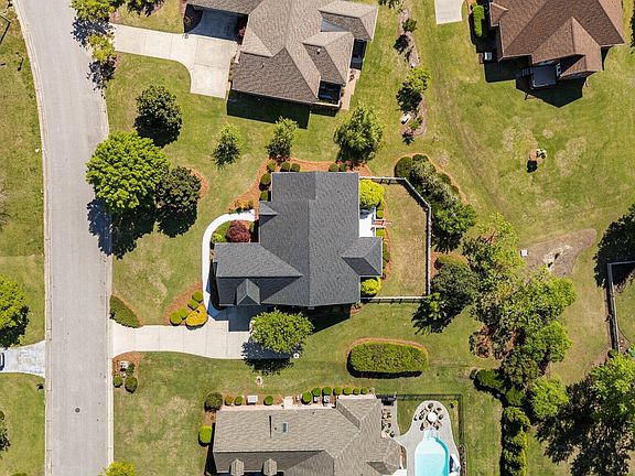 Welcome to gracious Southern living in one of the area's most desirable active communities! This stunning home offers a blend of traditional charm and modern comfort, starting with a classic rocking chair front porch that invites you to sit for a while. Enter into a large open foyer featuring a beautiful front door flanked by decorative side lights and topped w/half-circle transom. Inside, 9-foot ceilings flow throughout the home, complemented by cathedral ceilings in the foyer and living room that add a sense of spaciousness. Gorgeous hardwood floors stretch through the main living areas including the Primary BR, enhanced by custom trim, crown molding, chair rail, and wainscoting details that lend a refined touch. Living Rm features a gas-log fireplace with a decorative surround and mantel. Entertaining is a joy in the spacious formal dining room featuring a double tray ceiling, crown molding, and large double windows for added natural light. The kitchen has been thoughtfully updated with black granite countertops, a glass tile backsplash, abundant white cabinetry, and a pantry cabinet outfitted with pull-out drawers. Additional conveniences include two pull-out spice racks & some lower cabinets w/pull outs for easy access. The sunny breakfast nook is a bright and cheery space to enjoy your morning coffee, with double French doors opening into the sunroom. The sunroom is another showstopper, with walls of windows that overlook the beautifully landscaped backyard and tile flooring underfoot. Step directly out onto the raised patio with white vinyl railing—perfect for grilling, relaxing, or enjoying family gatherings. The spacious master suite is a private retreat, set apart from the other bedrooms in a split floor plan. It features a large walk-in closet and a private bathroom updated in 2023 with granite-topped double sink vanity offering ample storage, tile flooring and a stunning custom tile walk in shower. Bedrooms two and three are generously sized and..... connected by a Jack & Jill bathroom, which has also been updated with a granite countertop vanity and includes a tub/shower combo and linen closet. Upstairs, a large bonus room with a full bath offers flexible space for a fourth bedroom, recreation room, private office, or guest suite, along with attic access for extensive storage. A renovated laundry/mudroom off the garage features cabinetry and a utility sink, updated in 2023, along with a half bath nearby for guests. Additional features include a double-width driveway leading to a side-entry two-car garage with storage cabinetry, a vapor barrier installed in 2024, and a 20 KW generator conveys with home. A natural gas tankless water heater provides efficient hot water. The home is under a termite and pest control contract with X Team, including a recent inspection in early 2025. All custom window treatments and blinds convey, as does the security system equipment. The owners are also including a one-year 2-10 Home Warranty. Situated in the picturesque Taberna neighborhood, you'll enjoy access to sidewalks, nature walks, and optional memberships at the Taberna Golf and Country Club.