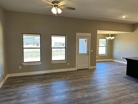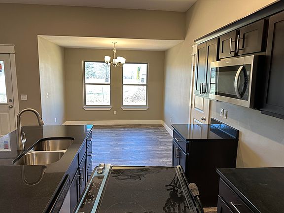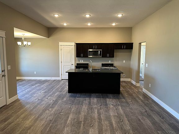 New 3 car garage split bedroom plan home with vinyl plank flooring in the kitchen and living areas, large kitchen island, granite countertops, walk-in pantry, raised ceilings, covered patio with a great view and landscaping. More new homes available in this subdivision.
